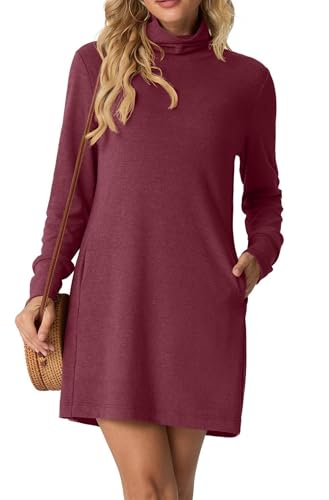 GRECERELLE Womens Turtleneck Mini Dress Long Sleev...
